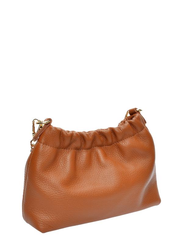 Crossbody bag 100% cow leather Magnetic snap closure Cotton lining with open pocket Gold-tone chain strap Dimensions: 15 x 21 x 6 cm Strap: 120 cm non-adjustable chain