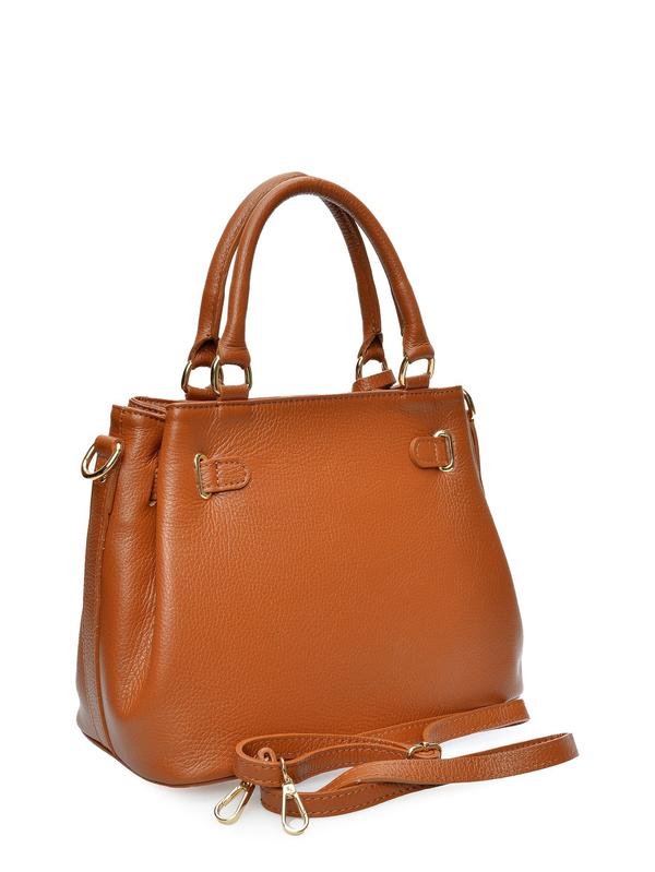 Top handle bag 100% cow leather Top zip closure with decorative turn lock and padlock detail Double handles and detachable shoulder strap Fabric lining with internal zip pocket and slip pocket Protective metal feet at the base Dimensions: 23.5 x 30 x 16.5 cm Handle: 30 cm Strap: 120 cm adjustable and detachable