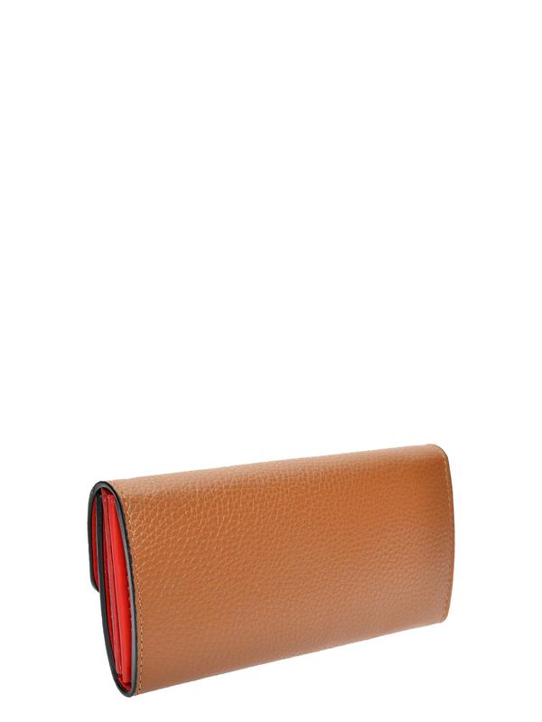 Wallet 100% cow leather Flap with snap button closure Multiple card slots, bill compartments, and internal zip coin pocket Contrasting red interior lining Dimensions: 8.5 x 18.5 x 3 cm