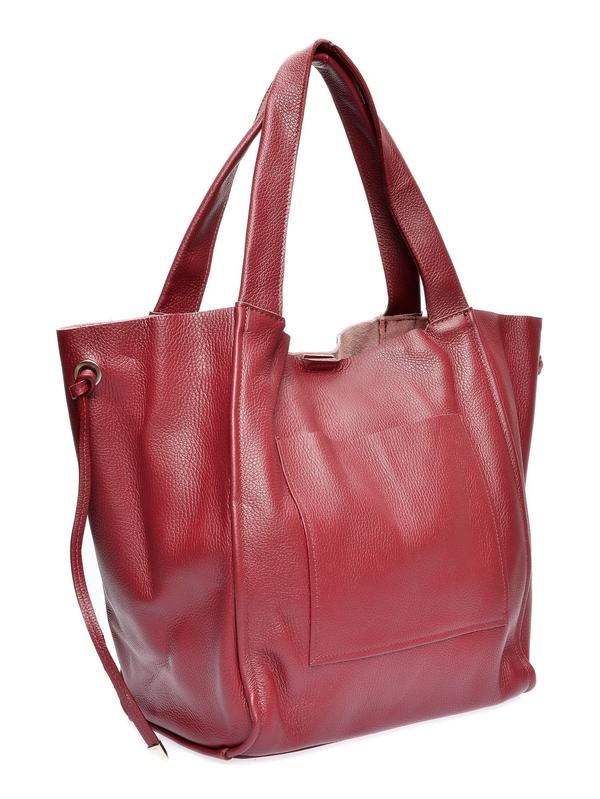 Tote Bag 100% cow leather Drawstring closure Inner zipped purse Front pocket Dimensions (L):38x54x19cm Handle: 52 cm non adjustable Shoulder strap: /