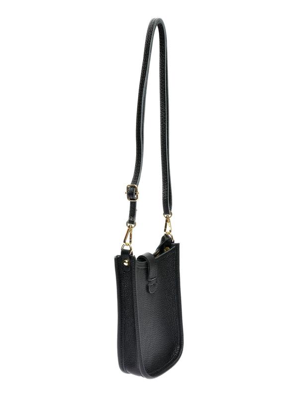 Crossbody bag 100% cow leather Front button closure Dimensions : 17.5x11.5x2 cm Shoulder strap: 120cm adjustable