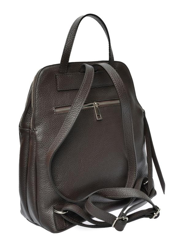 Backpack 100% cow leather Top zip closure Inner zip pocket Backside zip pocket Dimensions: 29x28x14.5 cm Handle: 21 cm Shoulder strap: 2x80 cm