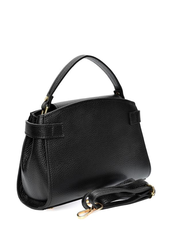 Handbag 100% cow leather Top buckle closure Inner zip pocket Dimensions: 17.5x25x8 cm Handle: 27 cm Shoulder strap: 120 cm
