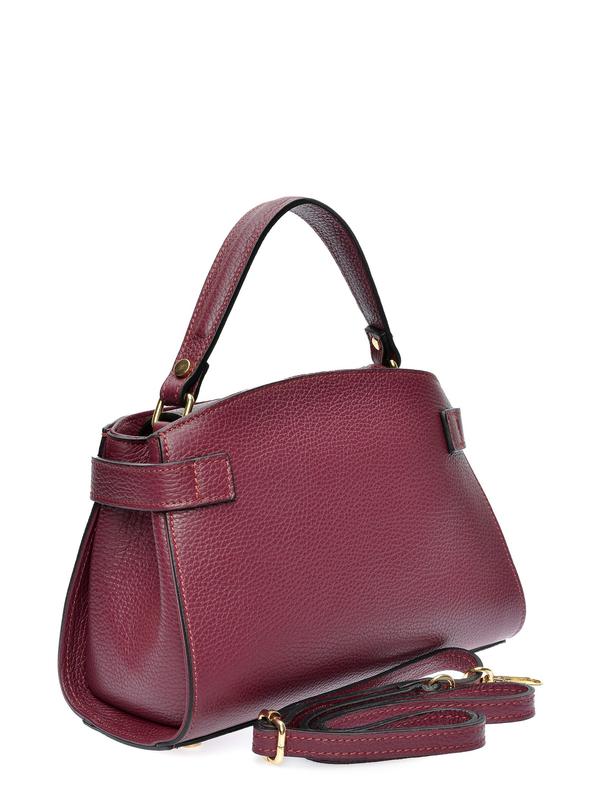 Handbag 100% cow leather Top buckle closure Inner zip pocket Dimensions: 17.5x25x8 cm Handle: 27 cm Shoulder strap: 120 cm