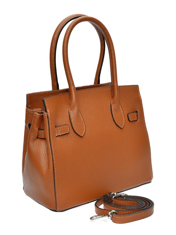 Handbag 100% cow leather Top zip closure Dimensions: 21.5x24x13 cm Handle: 32 cm Shoulder strap: 120 cm