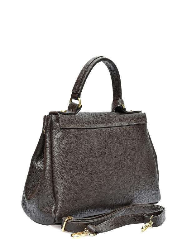 Handbag 100% cow leather Front buckle closure Internal zip pockets Dimensions: 21x28.5x11.5 cm Handle: 24 cm Shoulder strap: 120 cm