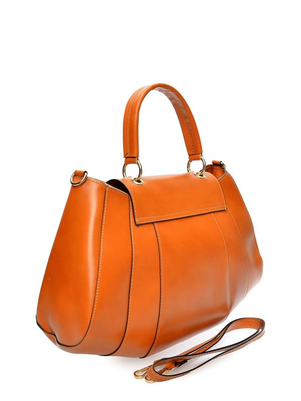 Handbag 100% cow leather Top zip closure Front magnetic closure Internal zip pocket Two internal compartments Dimensions: 27x30x8 cm Handle: 28 cm Shoulder strap: 95 cm