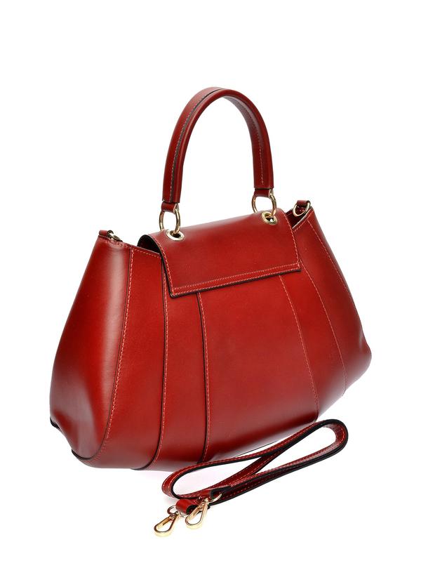 Handbag 100% cow leather Top zip closure Front magnetic closure Internal zip pocket Two internal compartments Dimensions: 27x30x8 cm Handle: 28 cm Shoulder strap: 95 cm