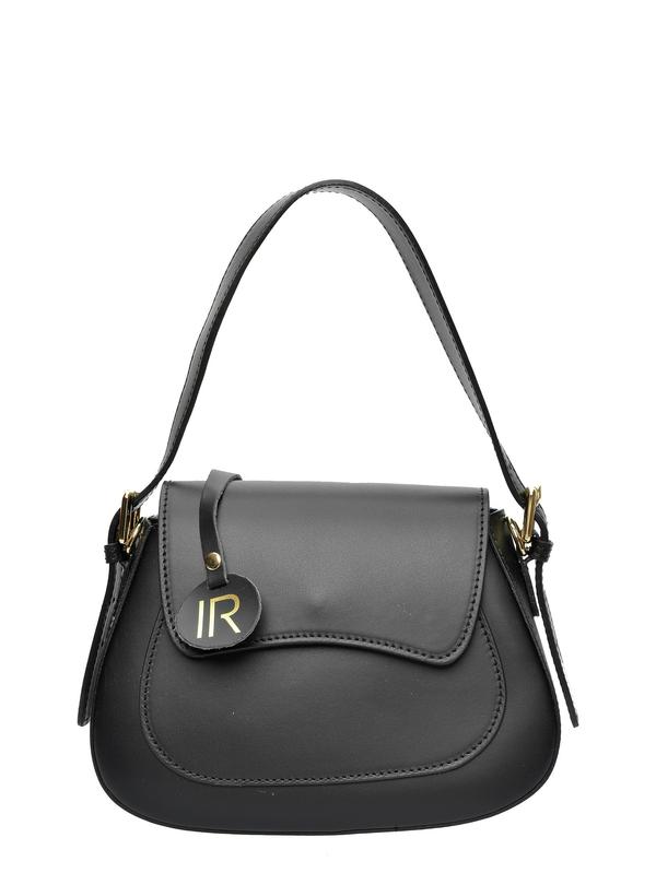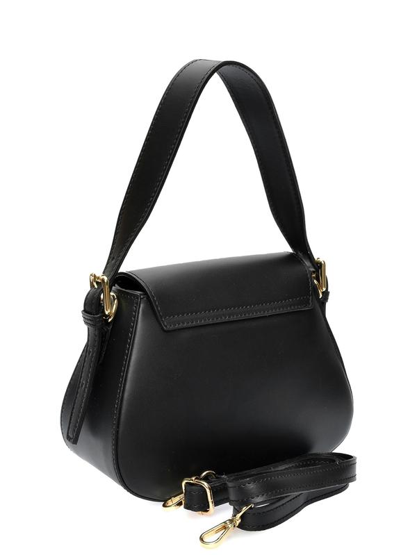 Handbag 100% cow leather Top zip closure Front magnetic closure Internal zip pocket Dimensions: 19x22.5x9 cm Handle: 36 cm Shoulder strap: 120 cm