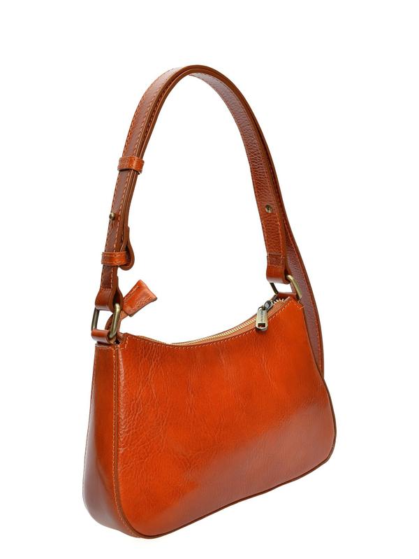Shoulder bag 100% cow leather Top zip closure Checked fabric lining with internal slip pocket Compact structured shape Dimensions: 15 x 24 x 6 cm Handle: 47 cm adjustable