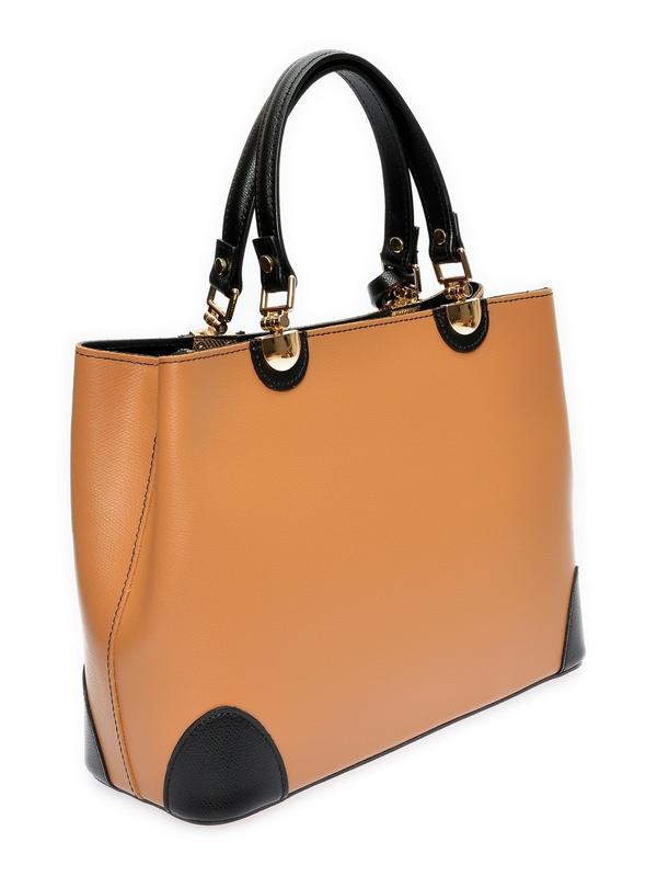 Top Handle Bag 100% cow leather Two top handles: 36 cm Interior zip organizing pocket Tassel accent on front Detachable shoulder strap Dimensions: 23.5x36x12 cm