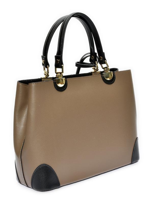 Top Handle Bag 100% cow leather Two top handles: 36 cm Interior zip organizing pocket Tassel accent on front Detachable shoulder strap Dimensions: 23.5x36x12 cm