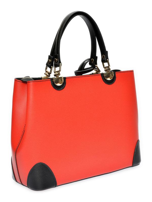Top Handle Bag 100% cow leather Two top handles: 36 cm Interior zip organizing pocket Tassel accent on front Detachable shoulder strap Dimensions: 23.5x36x12 cm