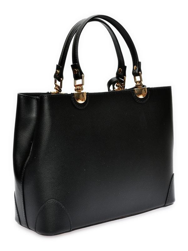Top Handle Bag 100% cow leather Two top handles: 36 cm Interior zip organizing pocket Tassel accent on front Detachable shoulder strap Dimensions: 23.5x36x12 cm