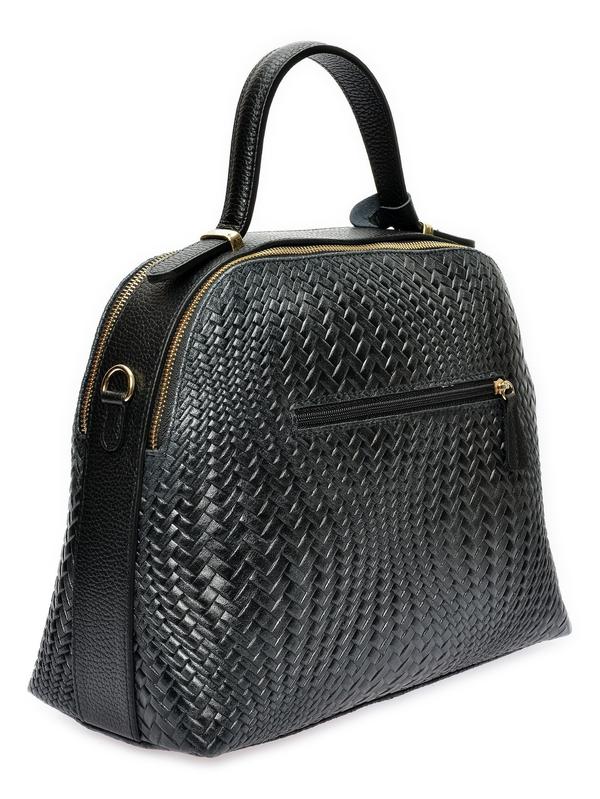 Top Handle Bag 100% cow leather Double top zip closure Exterior back pocket Interior zip pocket and mobile pocket Handle: 40cm Shoulder strap 110 cm Dimensions: 27x34x16 cm