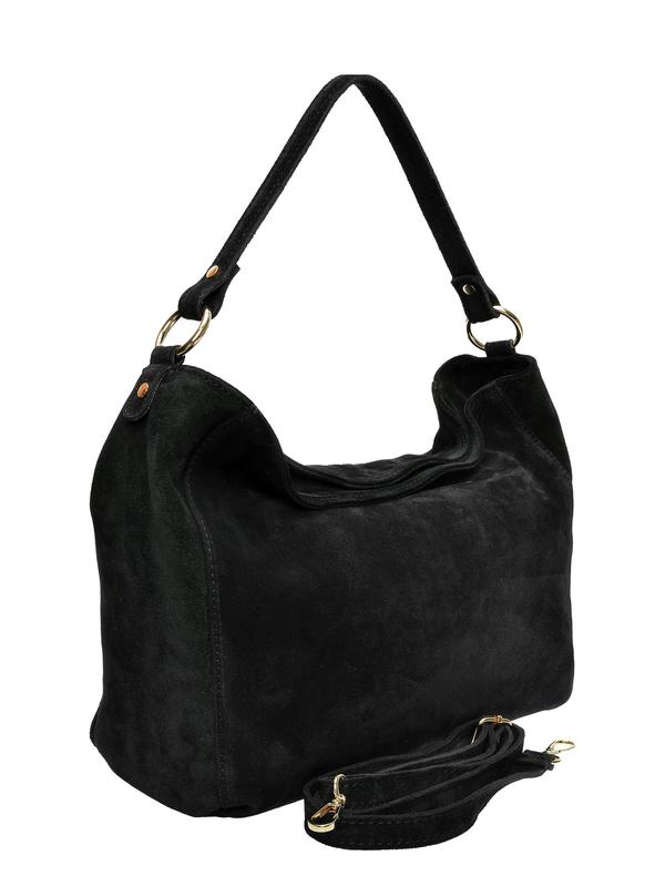 Shoulder bag 100% cow suede leather Top zip closure Gold-tone hardware Fabric lining with internal zip pocket Removable and adjustable long strap Dimensions: 27 x 32 x 11 cm Handle drop: 38 cm Strap: 115 cm adjustable