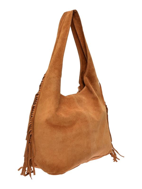 Hobo bag 100% cow leather (suede) Open top with magnetic closure Fringed side details Unlined interior with internal zip pocket Dimensions: 30 x 39 x 12 cm Handle drop: 50 cm