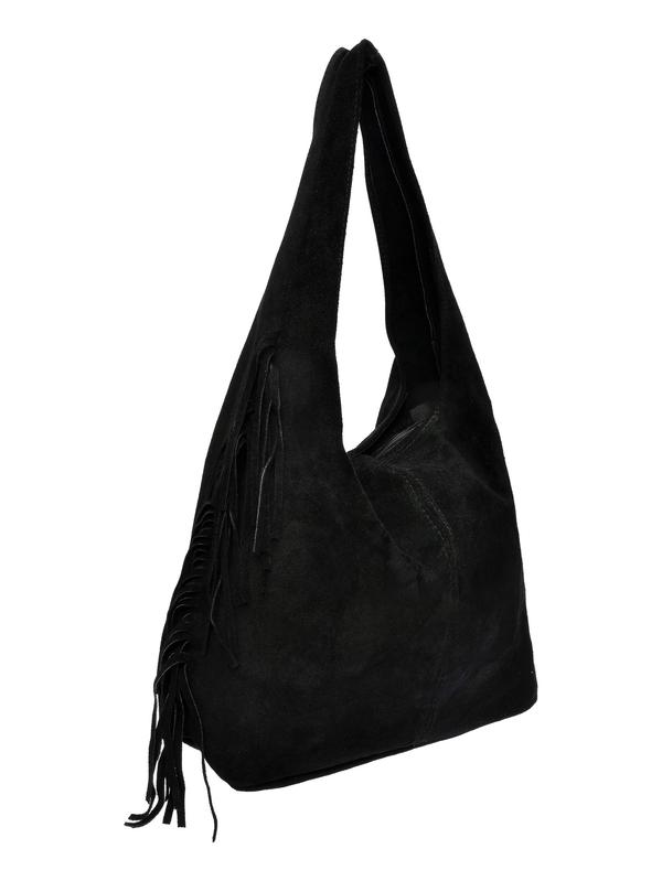 Hobo bag 100% cow leather (suede) Open top with magnetic closure Fringed side details Unlined interior with internal zip pocket Dimensions: 30 x 39 x 12 cm Handle drop: 50 cm