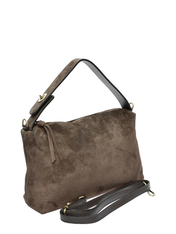 Shoulder bag 100% cow leather Top zip closure Fabric lining with internal zip pocket Adjustable and detachable shoulder strap 120 cm Dimensions: 21 x 30 x 9.5 cm Handle: 39 cm