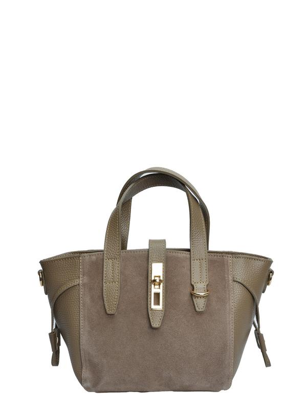 Tote bag 100% cow leather Twist-lock front closure Inner pocket Dimensions : 20.5x24x7 cm Handle : 28.5 cm Shoulder strap: 120 cm