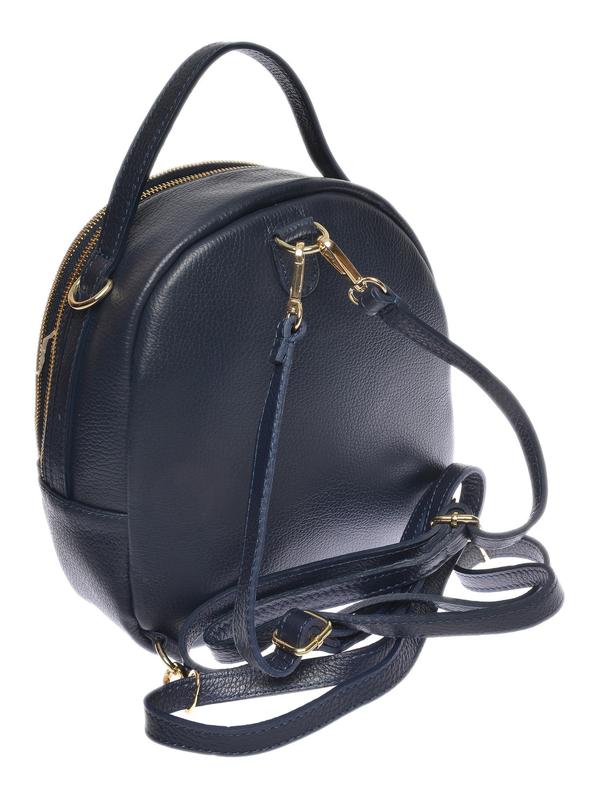 Backpack 100% cow leather Top zip closure Front zip pocket Dimensions: 27x26x9 cm Handle: 27 cm Shoulder strap: 2x90 cm