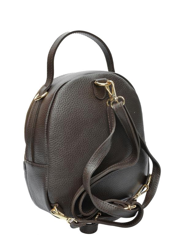 Backpack 100% cow leather Top zip closure Front zip pocket Dimensions: 27x26x9 cm Handle: 27 cm Shoulder strap: 2x90 cm