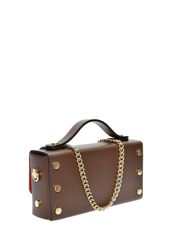 Top Handle Bag 100% smooth leather Flap with magnetic button closure Single top handle and detachable shoulder strap Contrasting interior lining Dimensions: 9 x 18 x 4.5 cm Handle: 12.5 cm Shoulder strap: 110 cm adjustable and detachable