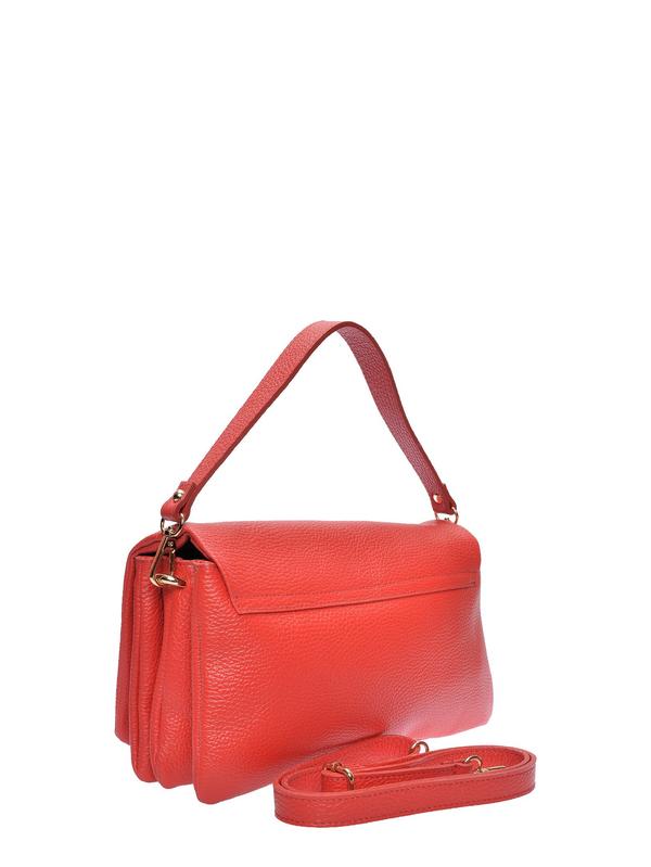 Shoulder bag 100% cow leather Flap with twist-lock closure Three compartments with fabric lining and internal zip pocket Detachable leather handle and additional chain strap Dimensions: 19 x 28 x 12 cm Handle: 20 cm Chain strap: 110 cm