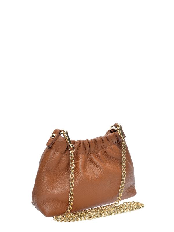 Crossbody bag 100% cow leather Magnetic snap closure Cotton lining with open pocket Gold-tone chain strap Dimensions: 15 x 21 x 6 cm Strap: 120 cm non-adjustable chain