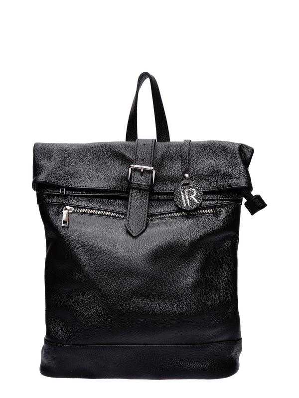 Backpack 100% cow leather Magnetic flap with buckle detail and top zip closure Front external zip pocket and back external zip pocket Fabric lining with internal zip pocket Dimensions: 40 x 34 x 10 cm Handle: 28 cm Adjustable leather shoulder straps 90x2 m