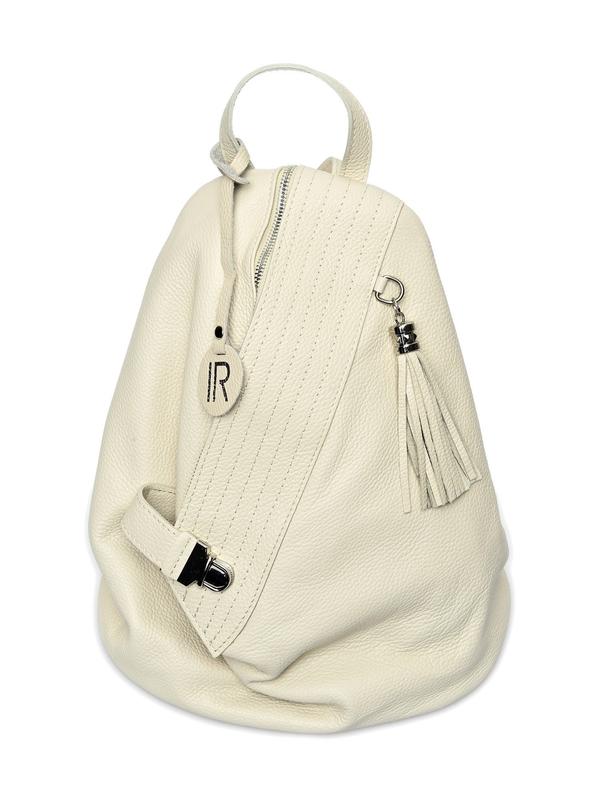 Backpack 100% cow leather Front zip closure Inner zip pocket Back zip pocket Tassel detail Dimensions (L): 43.5x35x17 cm Handle: 24cm Shoulder strap: 80cm x 2 cm
