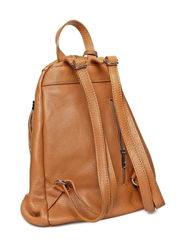 Backpack 100% cow leather Front zip closure Inner zip pocket Back zip pocket Tassel detail Dimensions (L): 43.5x35x17 cm Handle: 24cm Shoulder strap: 80cm x 2 cm
