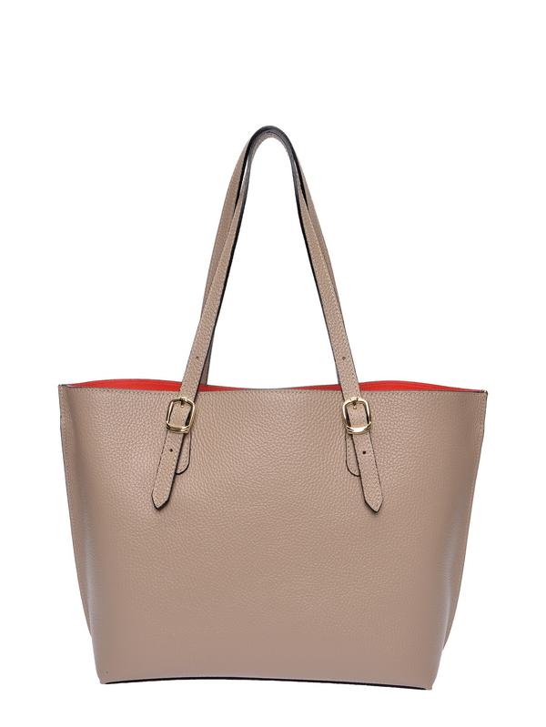 Shoulder bag 100% cow leather Open top part with internal zipped compartment Handle: 49 cm adjustable Shoulder strap : 120 cm adjustable and removable Dimensions: 26x29x9.5 cm