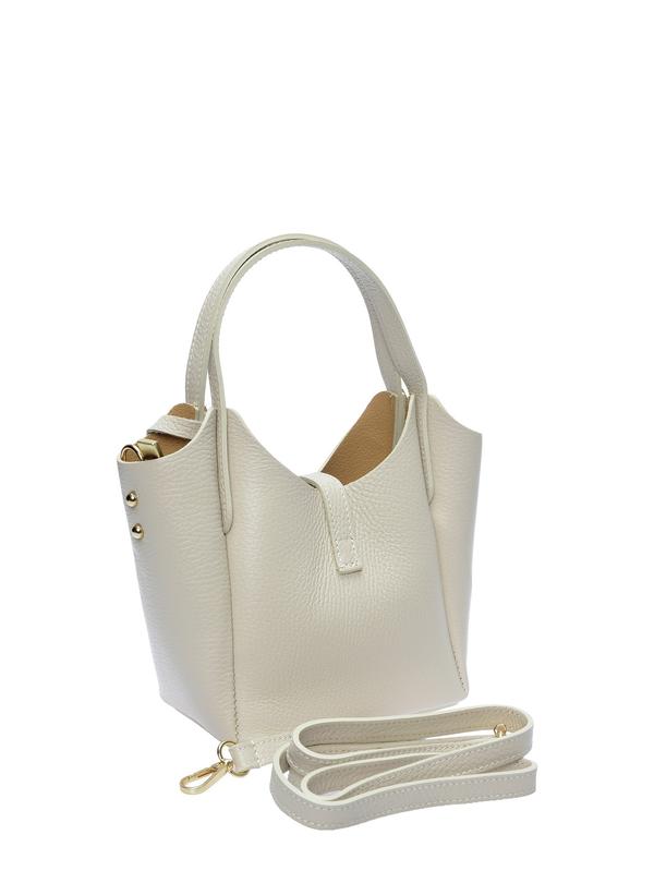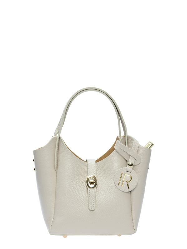 Tote bag 100% cow leather Top zip closure with front metallic buckle closure Internal zipped compartment Handle: 24 cm Shoulder strap : 120 cm adjustable and removable
