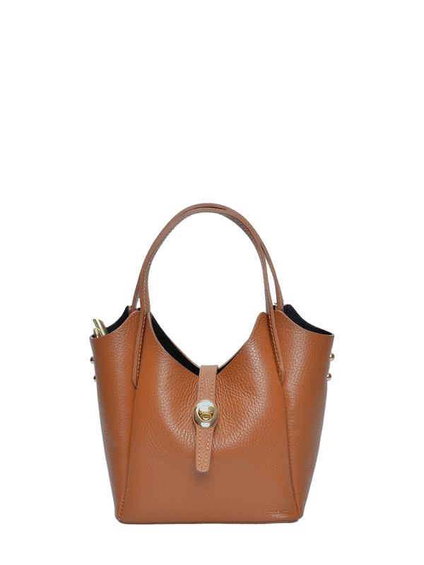 Tote bag 100% cow leather Top zip closure with front metallic buckle closure Internal zipped compartment Handle: 24 cm Shoulder strap : 120 cm adjustable and removable Dimensions: 14x16x10 cm