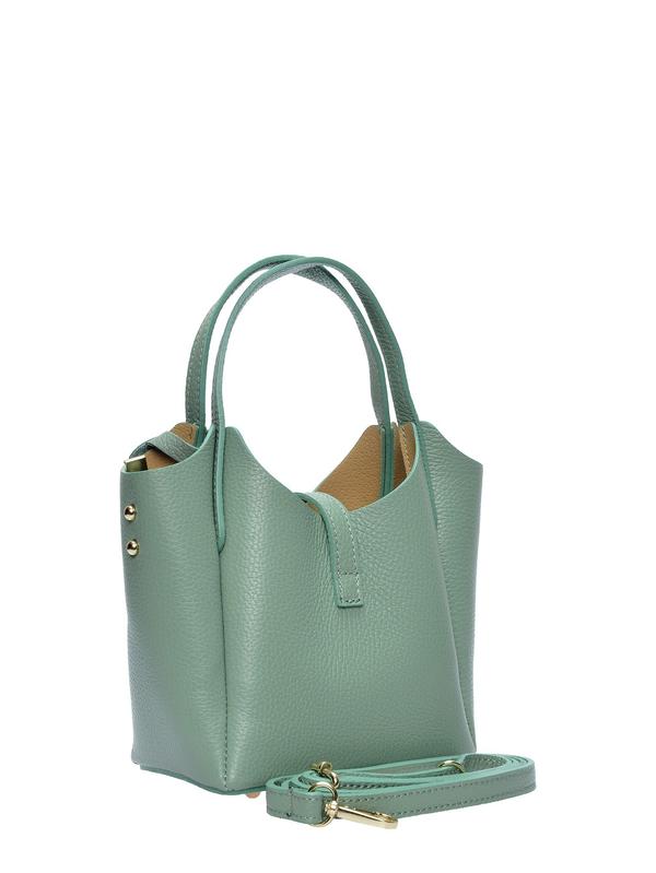 Tote bag 100% cow leather Top zip closure with front metallic buckle closure Internal zipped compartment Handle: 24 cm Shoulder strap : 120 cm adjustable and removable
