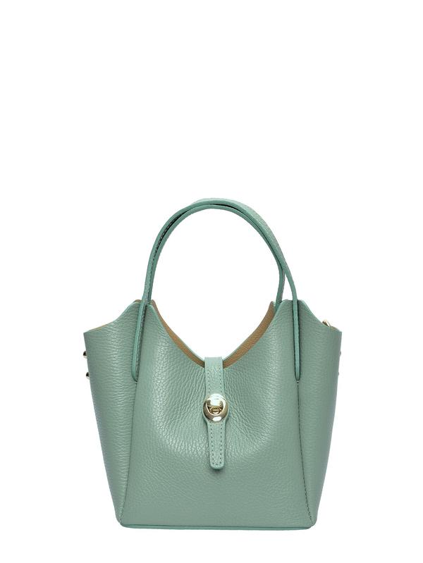 Tote bag 100% cow leather Top zip closure with front metallic buckle closure Internal zipped compartment Handle: 24 cm Shoulder strap : 120 cm adjustable and removable Dimensions: 14x16x10 cm