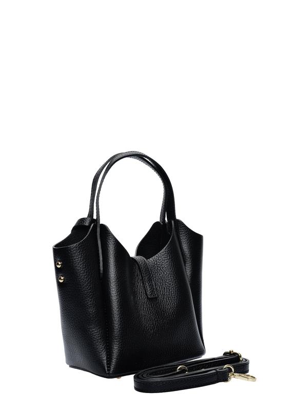 Tote bag 100% cow leather Top zip closure with front metallic buckle closure Internal zipped compartment Handle: 24 cm Shoulder strap : 120 cm adjustable and removable
