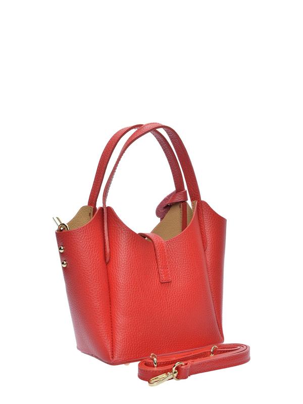 Tote bag 100% cow leather Top zip closure with front metallic buckle closure Internal zipped compartment Handle: 24 cm Shoulder strap : 120 cm adjustable and removable