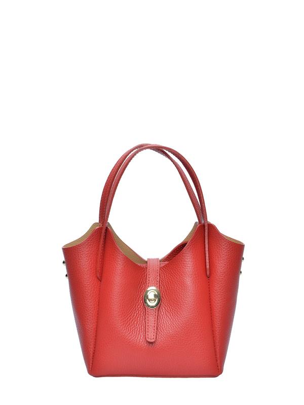Tote bag 100% cow leather Top zip closure with front metallic buckle closure Internal zipped compartment Handle: 24 cm Shoulder strap : 120 cm adjustable and removable Dimensions: 14x16x10 cm