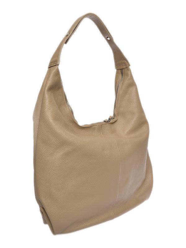 Shoulder bag 100% cow leather Top zip closure Internal zip pockets Two compartments Dimensions : 33x43.5x12 cm Handle: 51 cm