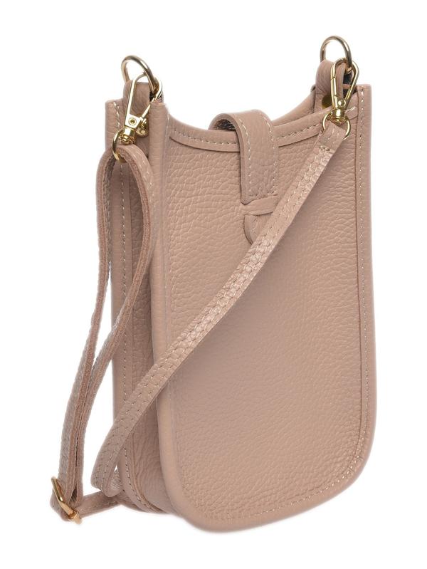 Crossbody bag 100% cow leather Front button closure Dimensions : 17.5x11.5x2 cm Shoulder strap: 120cm adjustable