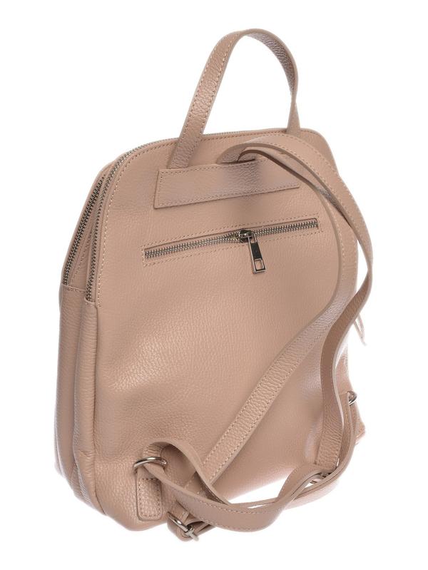 Backpack 100% cow leather Top zip closure Inner zip pocket Backside zip pocket Dimensions: 29x28x14.5 cm Handle: 21 cm Shoulder strap: 2x80 cm