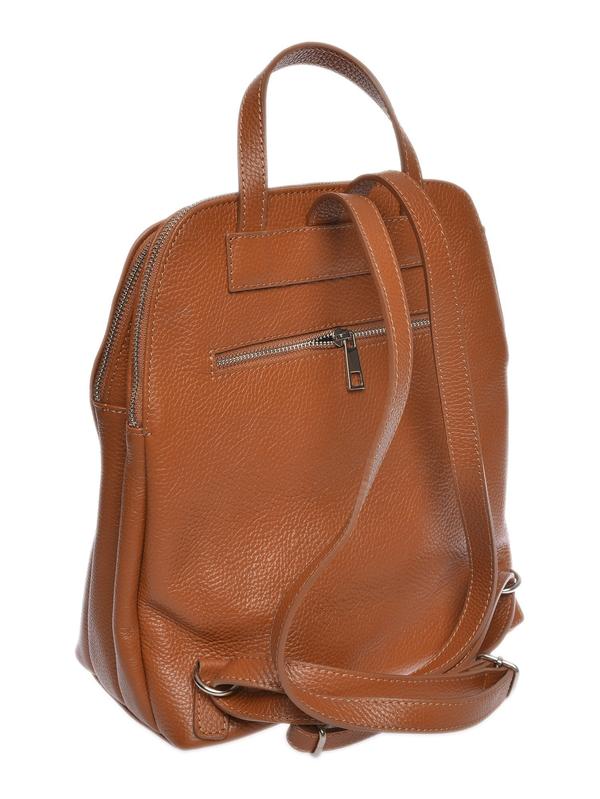 Backpack 100% cow leather Top zip closure Inner zip pocket Backside zip pocket Dimensions: 29x28x14.5 cm Handle: 21 cm Shoulder strap: 2x80 cm