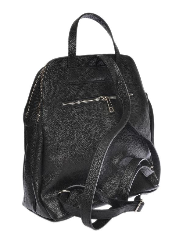 Backpack 100% cow leather Top zip closure Inner zip pocket Backside zip pocket Dimensions: 29x28x14.5 cm Handle: 21 cm Shoulder strap: 2x80 cm