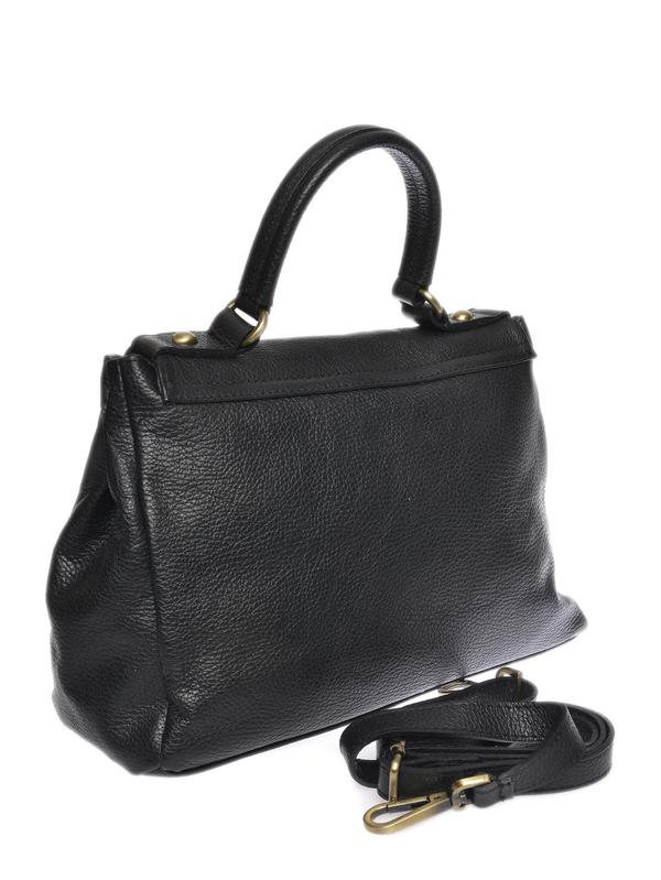 Handbag 100% cow leather Front buckle closure Internal zip pockets Dimensions: 21x28.5x11.5 cm Handle: 24 cm Shoulder strap: 120 cm