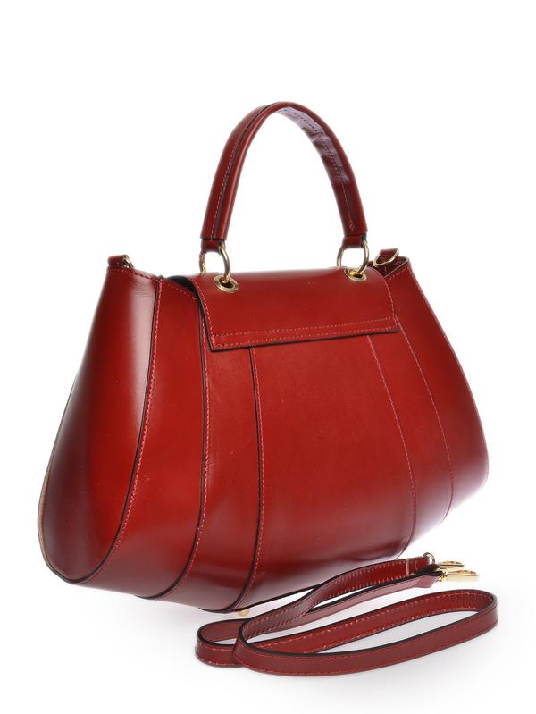 Handbag 100% cow leather Top zip closure Front magnetic closure Internal zip pocket Two internal compartments Dimensions: 27x30x8 cm Handle: 28 cm Shoulder strap: 95 cm