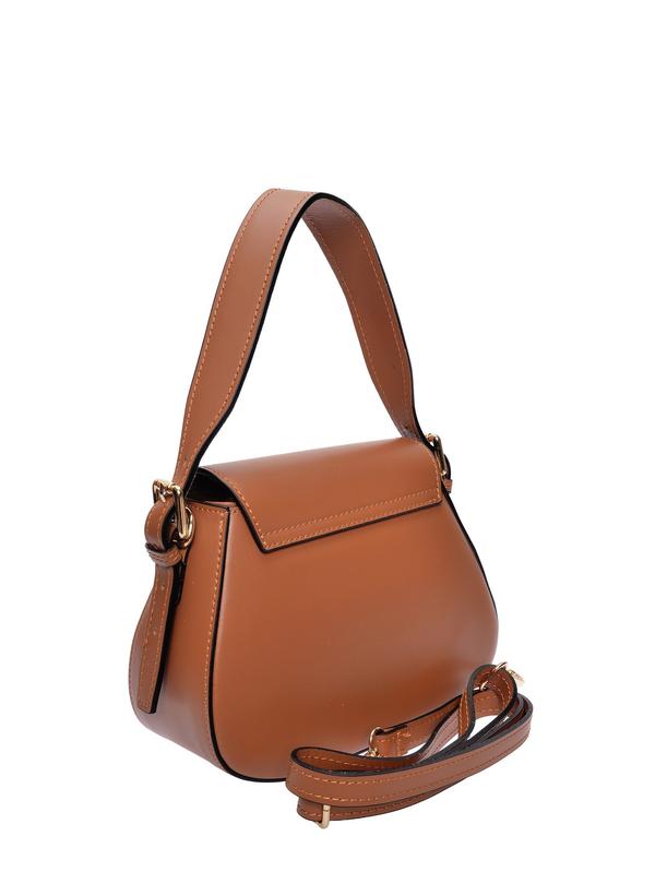 Handbag 100% cow leather Top zip closure Front magnetic closure Internal zip pocket Dimensions: 19x22.5x9 cm Handle: 36 cm Shoulder strap: 120 cm