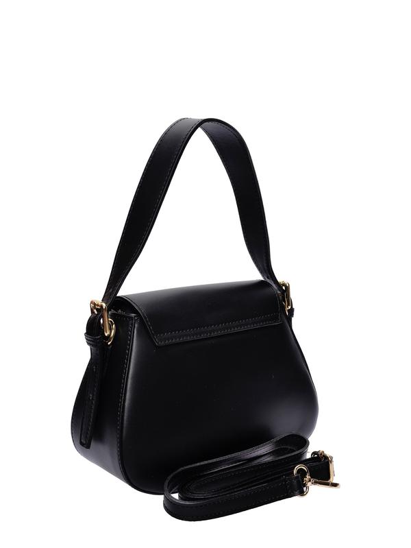 Handbag 100% cow leather Top zip closure Front magnetic closure Internal zip pocket Dimensions: 19x22.5x9 cm Handle: 36 cm Shoulder strap: 120 cm