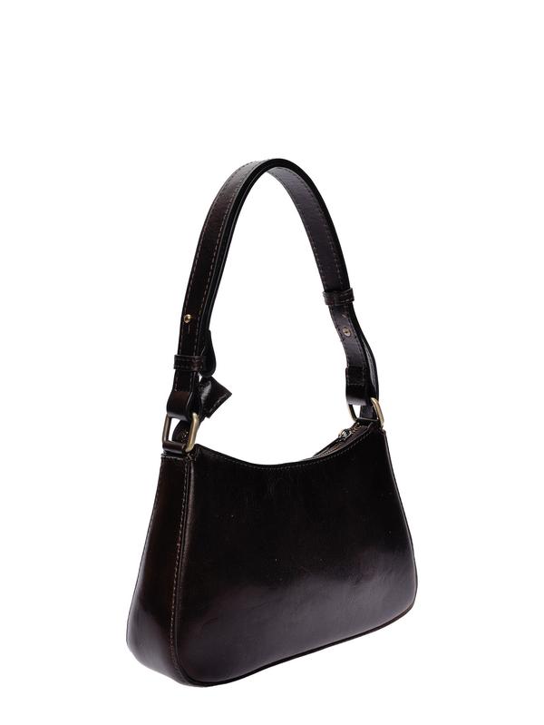 Shoulder bag 100% cow leather Top zip closure Checked fabric lining with internal slip pocket Compact structured shape Dimensions: 15 x 24 x 6 cm Handle: 47 cm adjustable